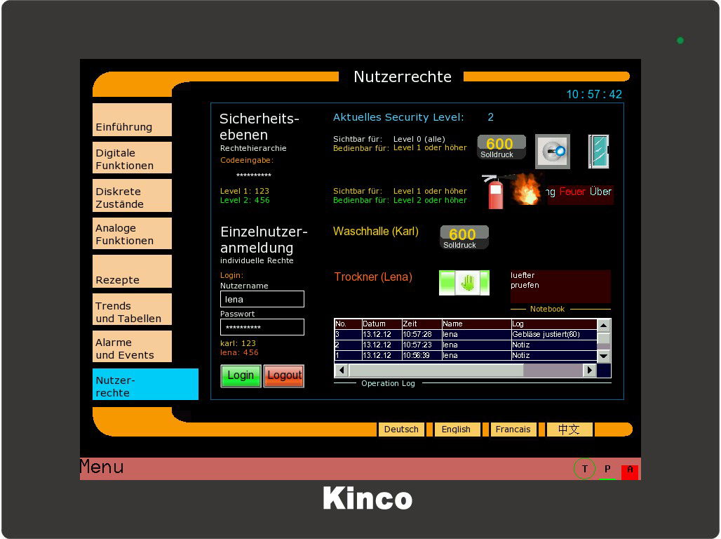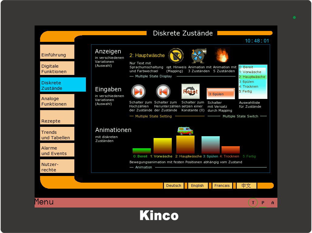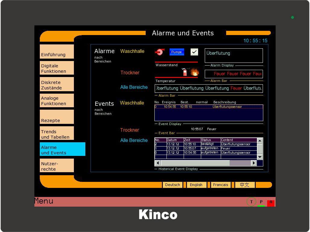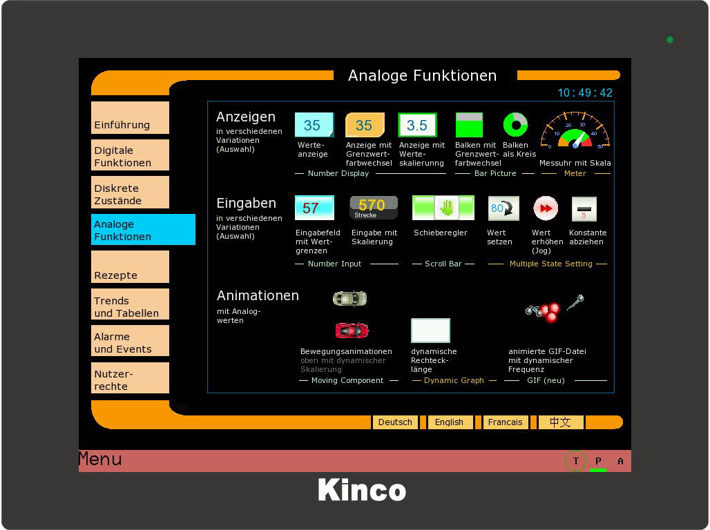 Wir haben für die HMI von Kinco eine sehr umfassende Demo erstellt. Im Demoprojekt sind die wichtigsten Funktionen und Möglichkeiten des HMI aufgezeigt. Ihr könnt die Demo hier völlig frei herunterladen und nach Herzenslust ausprobieren und natürlich auch ändern. Nutzt dazu einfach den Simulationsmodus der Kinco HMI Software. Zum Ausführen der Demo ist die aktuelle Version 2.0 von Kinco HMIware erforderlich. Im Beispielprojekt gehen wir neben grundlegenden Funktionen wie Schalter, Zustandsanzeigen und Analogwerten auch auf Rezeptverwaltung, Trends, Alarmierung und Rechteverwaltung ein. Für Rückfragen und Anregungen stehen wir jederzeit zur Verfügung.